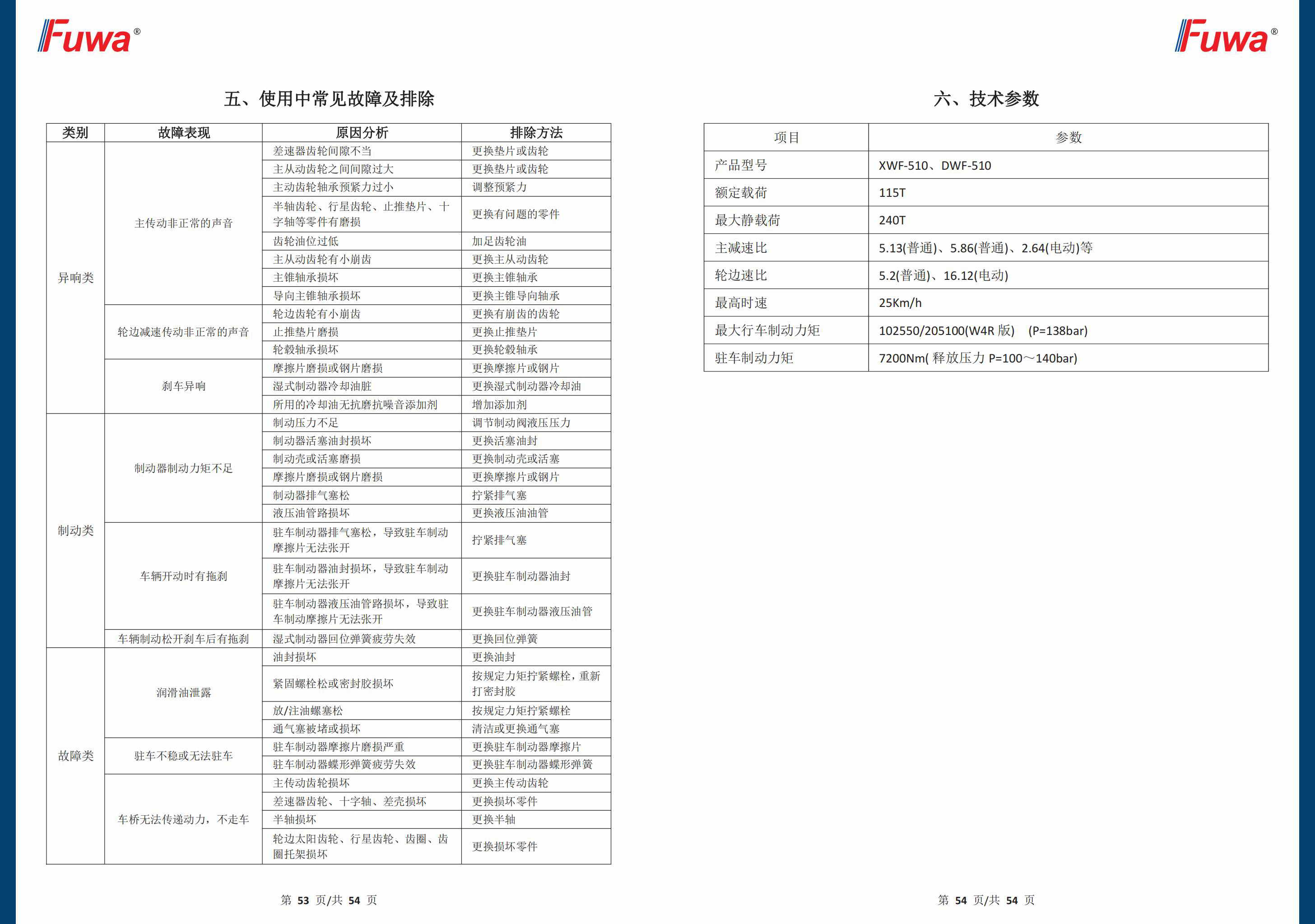 (正面吊)XWF-510 115噸濕式驅(qū)動橋總成產(chǎn)品維護(hù)保養(yǎng)手冊